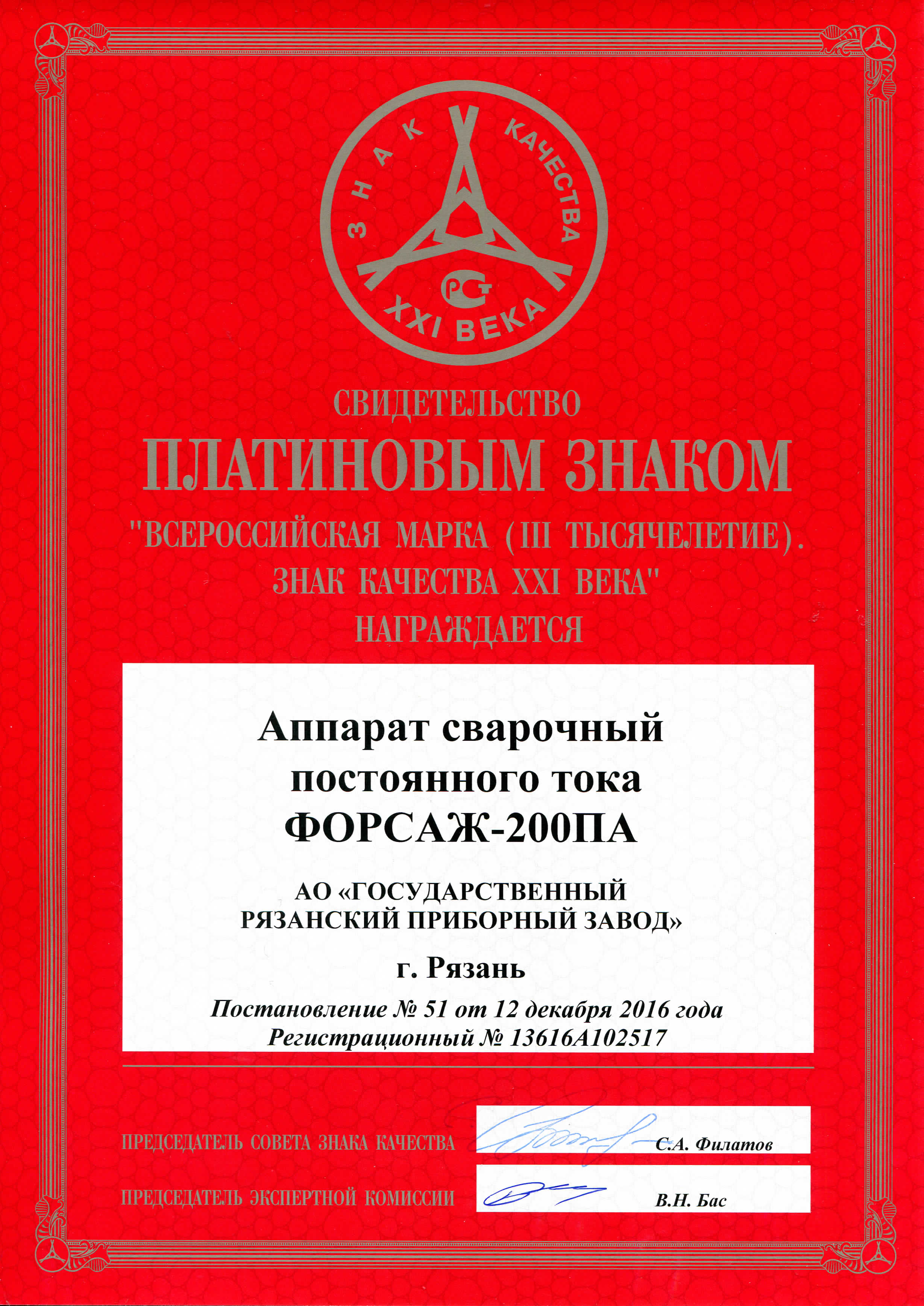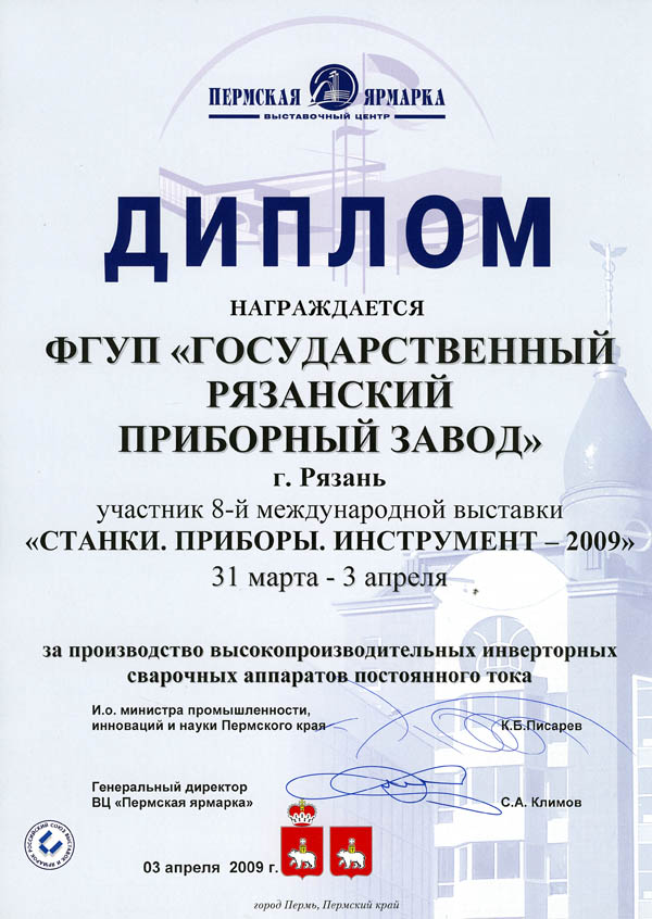 Лауреат конкурса (сварочные аппараты "Форсаж-301", "Форсаж-302", "Форсаж-501", "Форсаж-502")